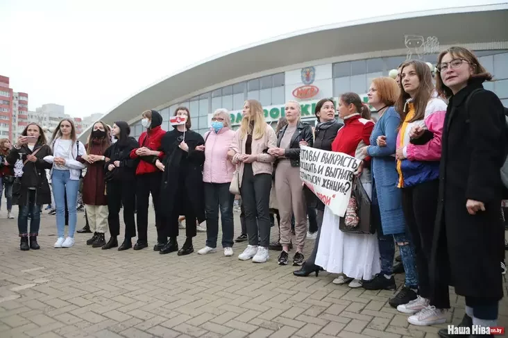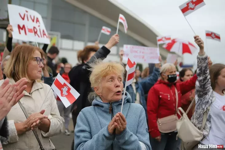 Калона дэманстрантаў з Камароўкі рушыла ў бок цэнтра. Яны пратэстуюць супраць выкрадання Марыі Калеснікавай і патрабуюць вызвалення палітвязняў.