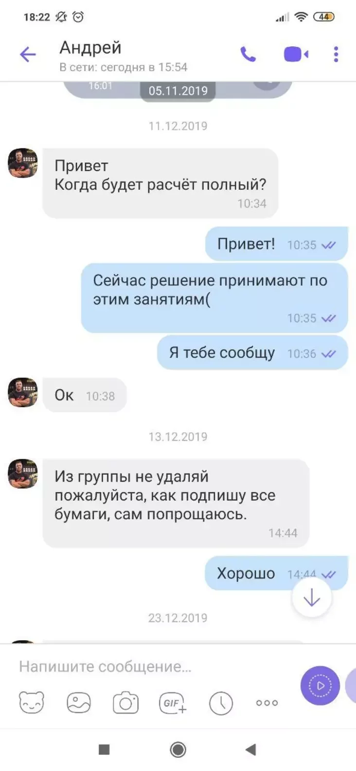 Кіраўніцтва клуба даслала ў рэдакцыю скрыншот размовы за 11 і 13 лістапада 2019 года, на якім Андрэй просіць не выдаляць яго з агульнага чата клуба, пакуль сам не развітаецца з усімі супрацоўнікамі. У рэдакцыі ёсць і выпіска па дамове клуба з Андрэем за 13 снежня 2019 года.