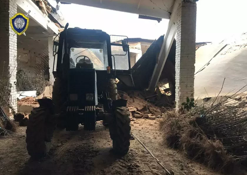 18-гадовы хлопец на трактары «Беларус» урэзаўся ў апорную калону бульбасховішча. Калона перакулілася і дах пабудовы абваліўся.