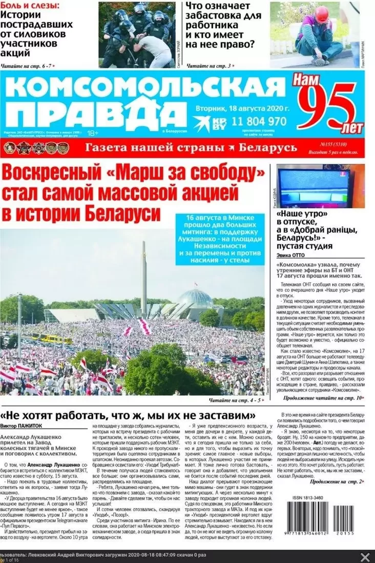 Сітуацыя з «Камсамольскай праўдай у Беларусі» застаецца крайне складанай. Пасля выбараў Дом друку адмовіўся друкаваць газету, якая пісала праўду пра пратэсты. «Белдрук» перастаў прадаваць яе ў сваіх кіёсках, а «Белпошта» анулявала падпіскі.