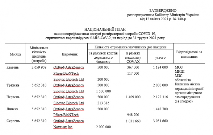 Мінімальная патрэба ў колькасці доз у снежні 2021 складае 47,8 мільёна доз. Пры ўмове, што кожнаму чалавеку трэба ўводзіць дзве дозы, гаворка ідзе аб прышчэпках для амаль 24 мільёнаў украінцаў.