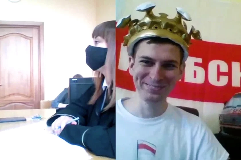 «На сведку яшчэ будзеце глядзець?» — «Не, дзякуй, вы сімпатычнейшая за сведку». Камічнае відэа анлайн-пасяджэння Віцебскага суда абляцела сацыяльныя сеткі. На ім хлопец троліць прысутных: мяняе галаўныя ўборы (надзявае то ваенную каску, то карону), сядзіць на фоне бел-чырвонага-белага сцяга і паказвае шыльду «сарказм».