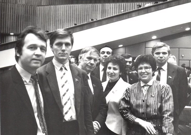 Аднадумцы-дэмакраты з розных рэспублік аб’ядналіся ў Міжрэгіянальную дэпутацкую групу. Яе ядром былі масквічы, сярод якіх — вядомыя па публікацыях у прэсе інтэлектуалы: легендарны акадэмік Андрэй Сахараў, прафесар-гісторык Юрый Афанасьеў, эканаміст Гаўрыіл Папоў, будучы мэр Масквы. Дзякуючы ім я перагледзеў некаторыя свае ранейшыя погляды. Напрыклад, я лічыў, што варта скарачаць касмічныя праграмы, бо галоднай краіне не да космасу. Але Папоў на гэта адказаў, што лепш ліквідаваць усю адсталую аўтавытворчасць, чым закрываць адзіную галіну, дзе мы не толькі канкурэнтаздольныя, але і на вышыні.