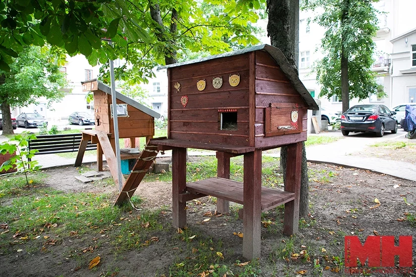 «У нас уся сям'я кашатнікаў. Таму і вырашылі такім спосабам падтрымаць бяздомных жывёл. Мы з яшчэ адной жыхаркай у нашым двары ініцыявалі праект, папрасілі рабочых зрабіць домікі. Тады якраз разам з капітальным рамонтам нашага дома зрабілі жыллё і для котак, — дзеліцца мясцовая жыхарка Таццяна. — Першы домік з'явіўся ў лістападзе, другі — у сакавіку.