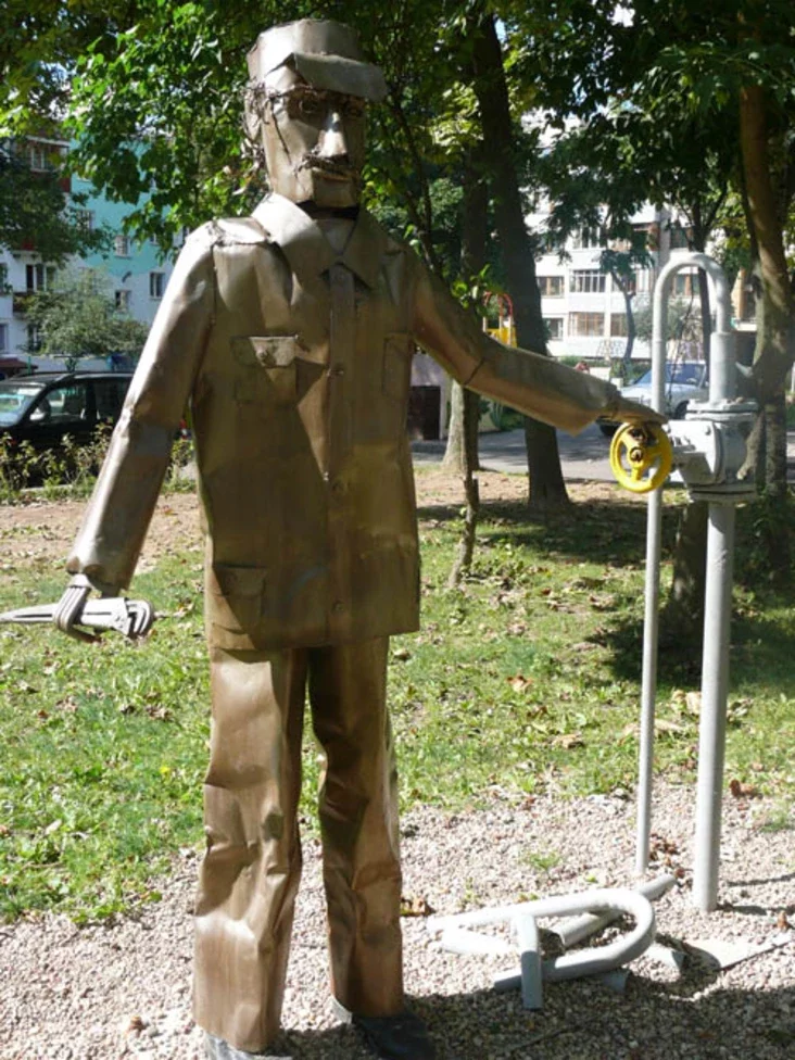 Працу сантэхніка ў нас паважаюць. Вось на вуліцы Караля (каля д.17), недалёк ад крамы «Радыётэхніка», нават усталявалі помнік у гонар работніка помпы і пракладкі. Скульптар з замілаванасцю дадаў да скульптуры сапраўдны развадны ключ і кран. Заўважым, што за колькі месяцаў свайго існавання гэты помнік, які стаіць без пастамента пасярод звычайнага мінскага двара, паводле словаў жыхароў прылежнага дому ні разу не рабіўся аб'ектам нападу блюзнераў. На «Сантэхніка» на першым часе хіба колькі разоў мала не наехалі на сваіх аўто самі ўражаныя скульптурай жыхары.