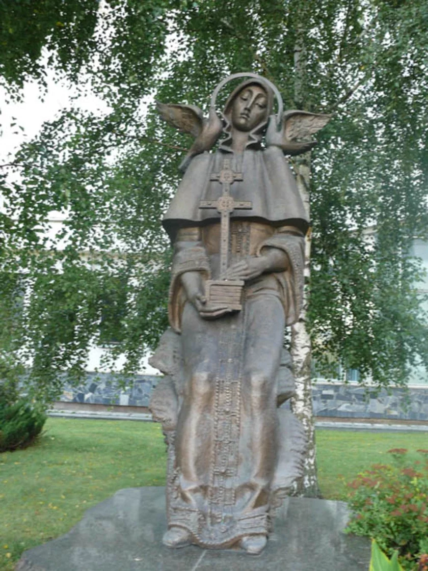 Помнік асветніцы Еўфрасінні Полацкай знаходзіцца ля ўваходу ў Інстытут сродкаў аўтаматызацыі на цэнтральнай вуліцы гораду — праспекце Незалежнасці (ля дому №117), якіх паўкіламетра ад «нацыяналкі». У свой час скульптуру прытуліла кіраўніцтва інстытута, пасля таго, як помнік не прайшоў атэстацыі паводле памераў — яго палічылі замалым і адмовіліся ўсталёўваць у іншым, больш выгодным месцы. Пастамент помніка мае форму разгорнутае кнігі.