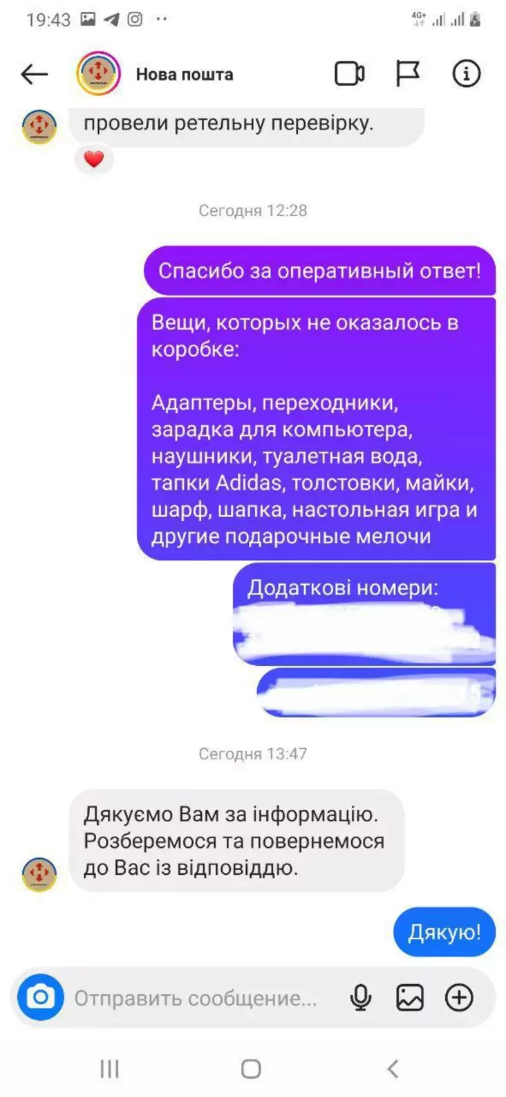 Калі верыць сацсеткам, гэта не першы выпадак, калі з пасылак, апраўленых праз гэты сэрвіс, нешта знікае. Карыстальнікі пісалі пра дзіцячыя тавары і прадметы жаночай гігіены, якіх не знайшлося ў пасылцы для бежанцаў з Харкава, пра парэзаную скрынку, з якой прапалі джынсы і цёплыя кофты. «Новая Пошта» ў каментарыях абяцала разабрацца з гэтымі выпадкамі.