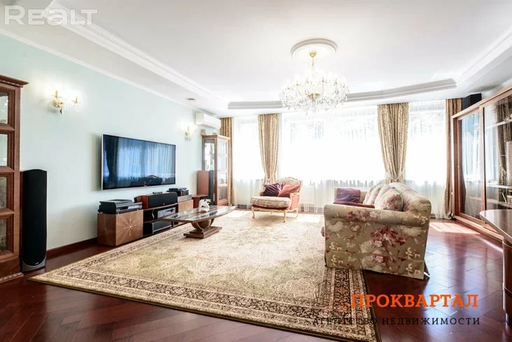 У кватэры, што прадаюць, — новы дызайнерскі рамонт. У аздабленні «выкарыстаныя самыя дарагія матэрыялы, такія як натуральны мармур, онікс, паркет».