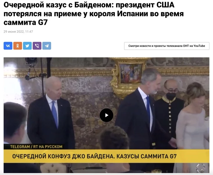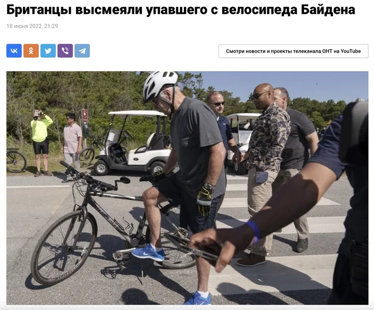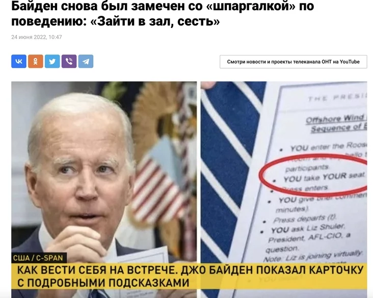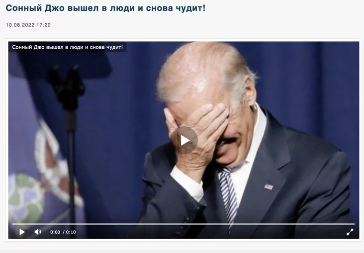 Звярніце ўвагу, прапаганда ў гэтых выпадках крытыкуе Байдэна не за погляды, не за палітычную пазіцыю, не за думкі, а займаецца выключна пошукам дробных і прымітыўных зачэпак, каб максімальна зняславіць амерыканскага прэзідэнта, высмеяць ягоны ўзрост (хаця кіраўнікі Беларусі і Расіі зусім не маладыя людзі), паказаць абмежаваным і неадукаваным чалавекам.
