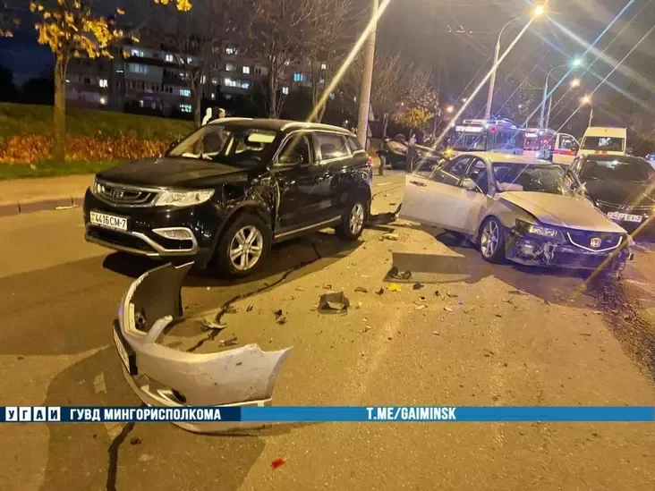 Каля 21.00 22-гадовы мужчына на аўтамабілі «Фальксваген», які належыць каршэрынгавай службе, ехаў па вуліцы Вірскай з боку вуліцы Казінца ў напрамку вуліцы Брылеўскай, не справіўся з кіраваннем, пратараніў металічную агароджу і выехаў на паласу сустрэчнага руху, дзе здзейсніў сутыкненне з аўтамабілямі «Хонда», «Хёндэ», «Джылі», «Мерсэдэс», а затым перакуліўся.