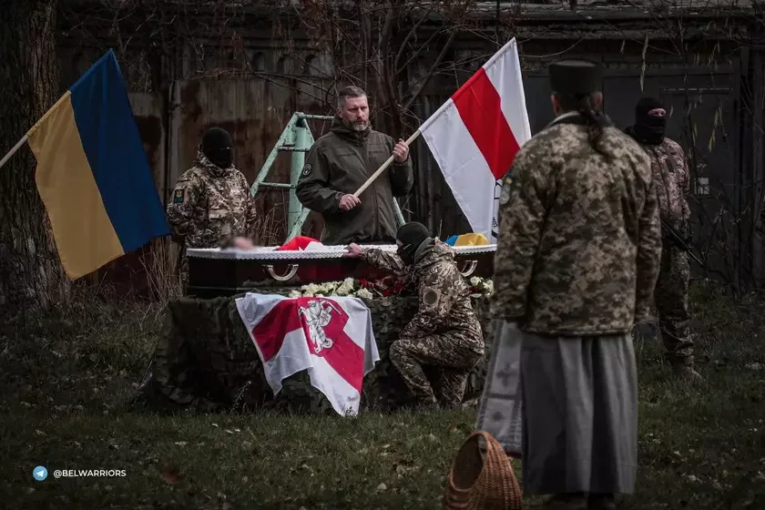 Полк Каліноўскага развітаўся з загінулым ваяром. Гэта 16-ты беларускі добраахвотнік, які загінуў, абараняючы Украіну