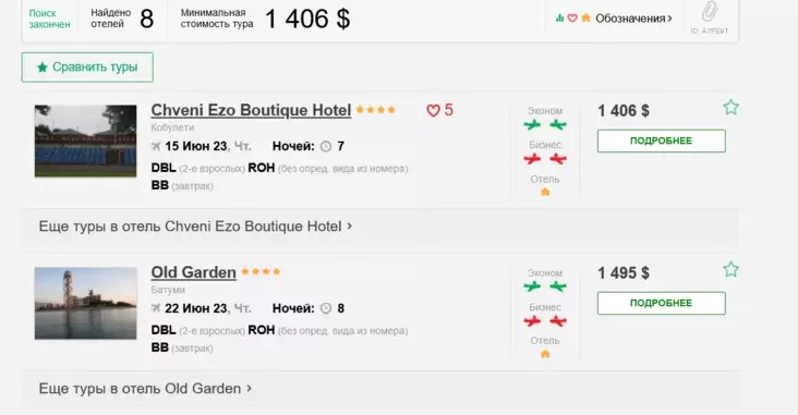 З ліпеня па верасень такога ж тыпу пуцёўкі падаражэюць на 113 даляраў, але ж будуць таннейшыя варыянты ў блізкім да Батумі курорце Кабулеці (ад 1330 даляраў на дваіх).