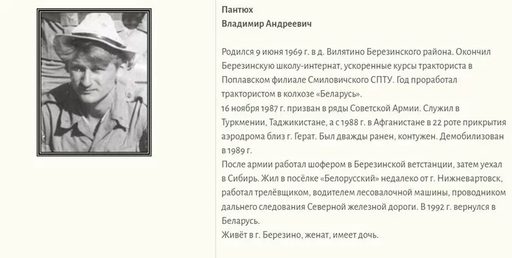 Уладзімір Панцюх нарадзіўся ў 1969 годзе ў вёсцы Віляціна Бярэзінскага раёна. У 1987-м яго прызвалі ў Савецкую армію, а праз год накіравалі ў Афганістан, дзе ён служыў у роце прыкрыцця аэрадрома каля горада Герат. Панцюх атрымаў там два раненні і кантузію. Інфармацыя пра гэта змешчаная на сайце Бярэзінскага райвыканкама.