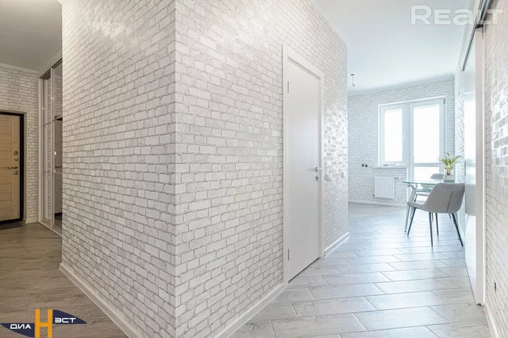 Ёсць ламінат, шпалеры, плітка. Тут ёсць цалкам абсталяваны санвузел з душавой кабінай, аднак няма гатовай кухні.