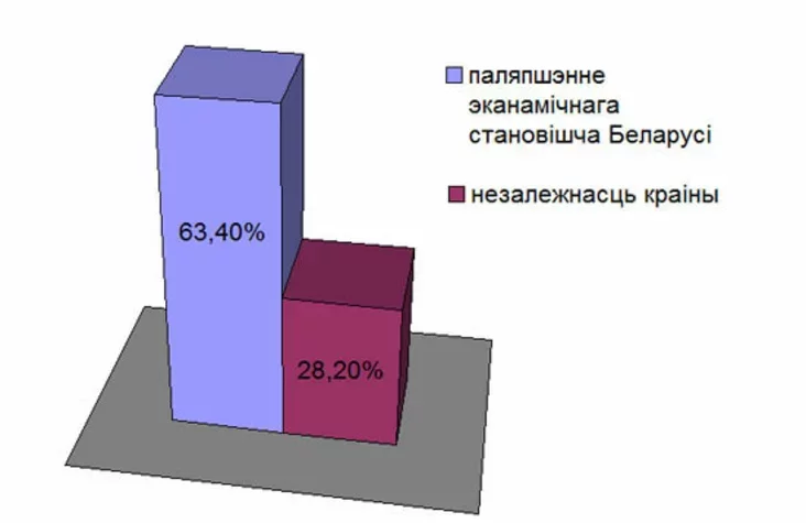 Пытанне: «Скажыце, што больш важна — паляпшэнне эканамічнага становішча Беларусі ці незалежнасць краіны?»