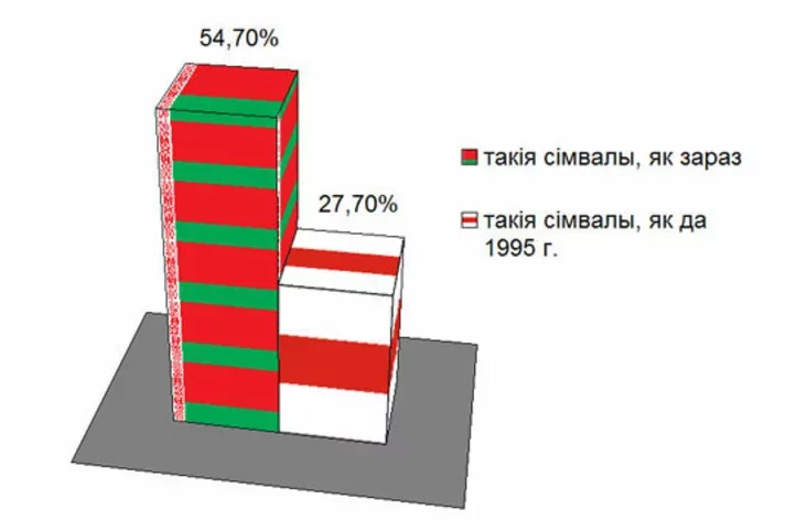 Якія дзяржаўныя сімвалы (герб, сцяг) больш адпавядаюць гістарычнай і культурнай спадчыны беларускай нацыі — якія былі з 1991 па 1995 гады (з гербам «Пагоня») або цяперашнія (нагадваюць сімвалы БССР)?