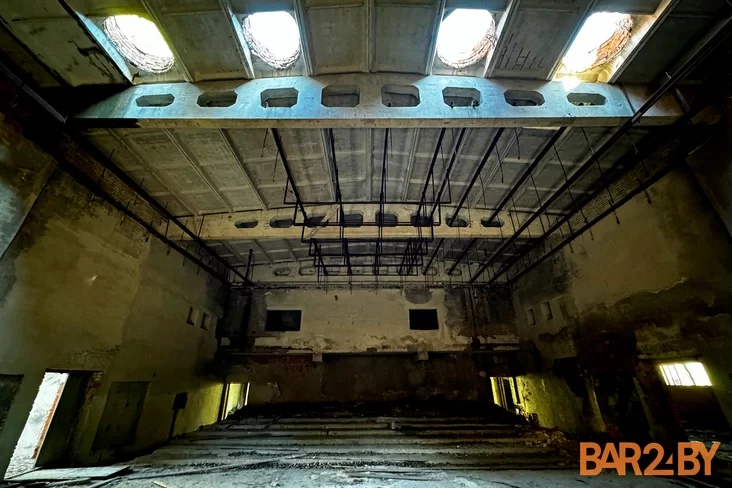 Час аказаўся да яго бязлітасным: у некаторых месцах абваліліся сцены, дах і цэлы лесвічны пралёт. Унутры будынка ўсё выглядае старым і небяспечным. Але складана ўтрымацца і не прайсціся па школьных кабінетах.