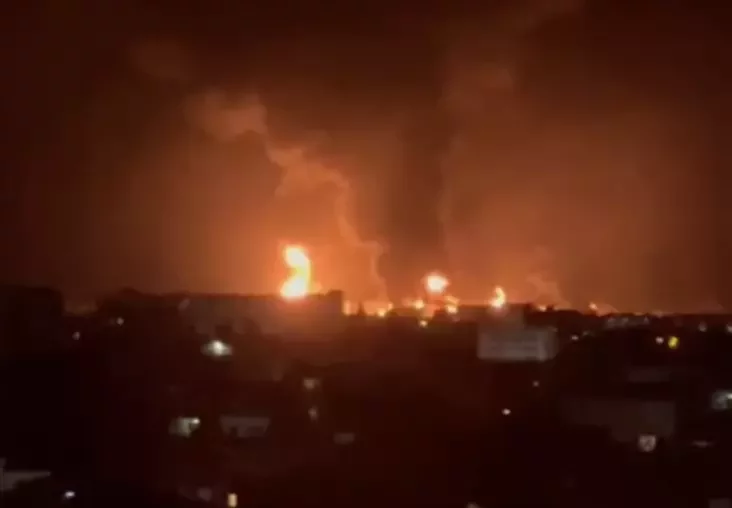 Спадарожнікавую фатаграфію нафтабазы ў Крыме, на якой быў вялікі пажар, выклаў украінскі OSINT-праект «КиберБорошно».