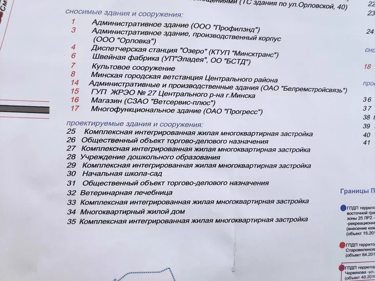 У новым дэталёвым плане пералічаныя ўсе нежылыя будынкі, якія збіраюцца знесці. Усяго іх налічылі 11 штук.