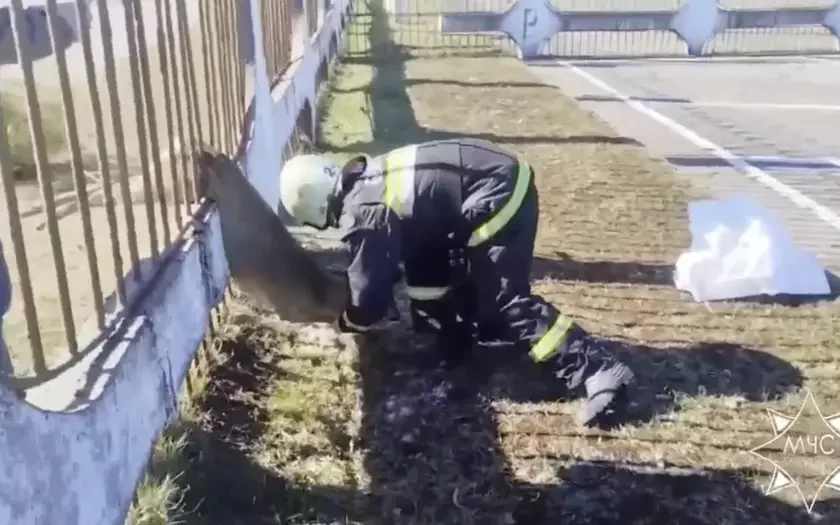 Пра тое, што лясная жывёліна захрасла паміж металічнымі прутамі агароджы на вуліцы Шчорса ў Барысаве, паведаміла прэс-служба МНС.