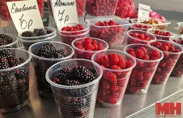 Ягадны асартымент прадстаўлены чарніцамі па 19−25 рублёў за кілаграм, буякі ад 15 да 25, брусніцай ад 14. Клубніцы каштуюць ад 11 рублёў да амаль 30, маліны пачынаецца з 13, ажыны — з 14. Абляпіха мінімум у 19 рублёў за літр.