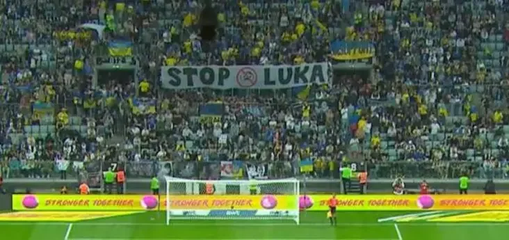 Заўзятары расцягнулі на футбольным матчы плакат «Стоп Лука» ФОТАФАКТ