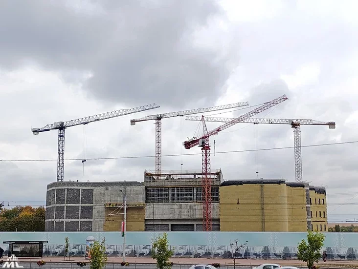 На аб’екце зараз задзейнічана 320 чалавек і чатыры вежавыя краны.
