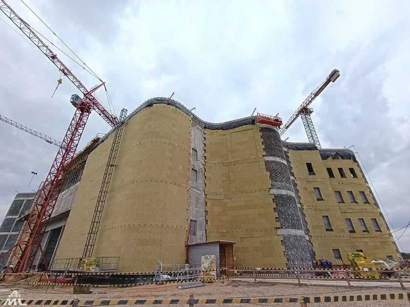 Да канца гэтага месяца будаўнікі плануюць прыступіць да мантажу вітражных сістэм (каб закрыць контур першых трох паверхаў) і ўладкавання вентыляванага фасаду.