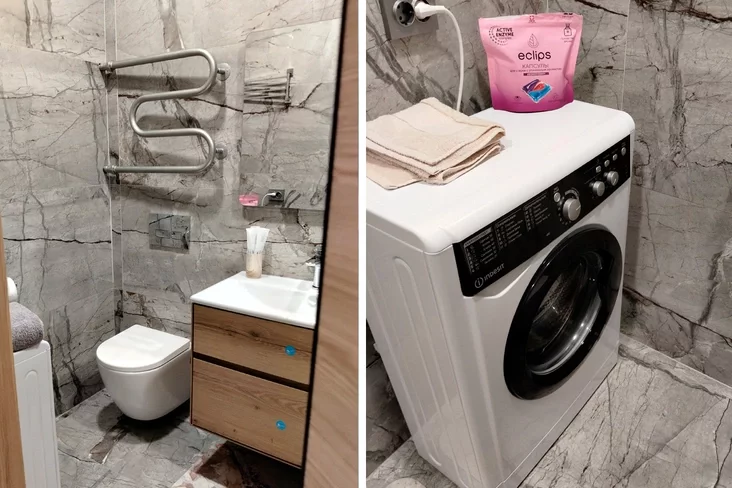 Санвузел сумешчаны. Ёсць душавая кабіна, падключаная пральная машына.