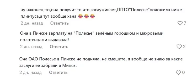 «Ну нарэшце, яна атрымае тое, што заслугоўвае. ППТА «Палессе» паклала ніжэй за плінтус, а тут увогуле хана».