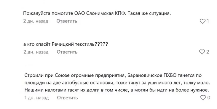 На фоне абмеркавання лёсу «Камволя» карыстальнікі згадваюць і іншыя прадпрыемствы галіны, якія ні жывыя ні мёртвыя, і просяць звярнуць на іх увагу.