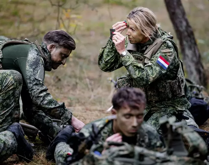 Каралева Нідэрландаў апранула вайсковую форму і нанесла на твар маскіроўку ФОТАФАКТ