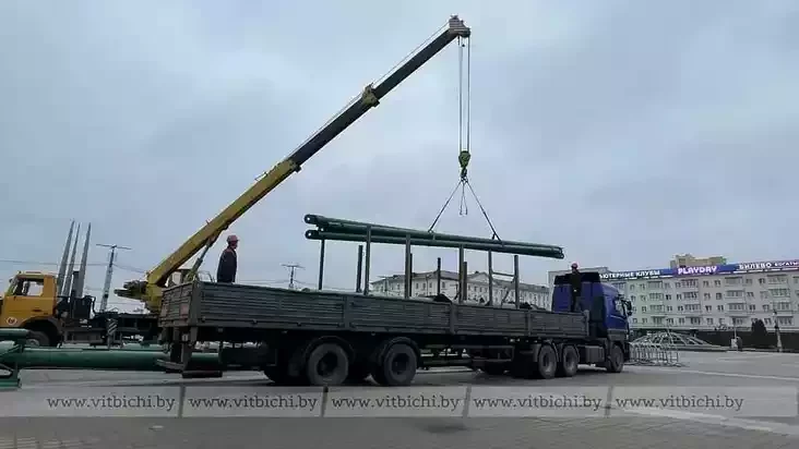 Пачатак мантажу ёлкі ў Віцебску. Фота: vitbichi.by