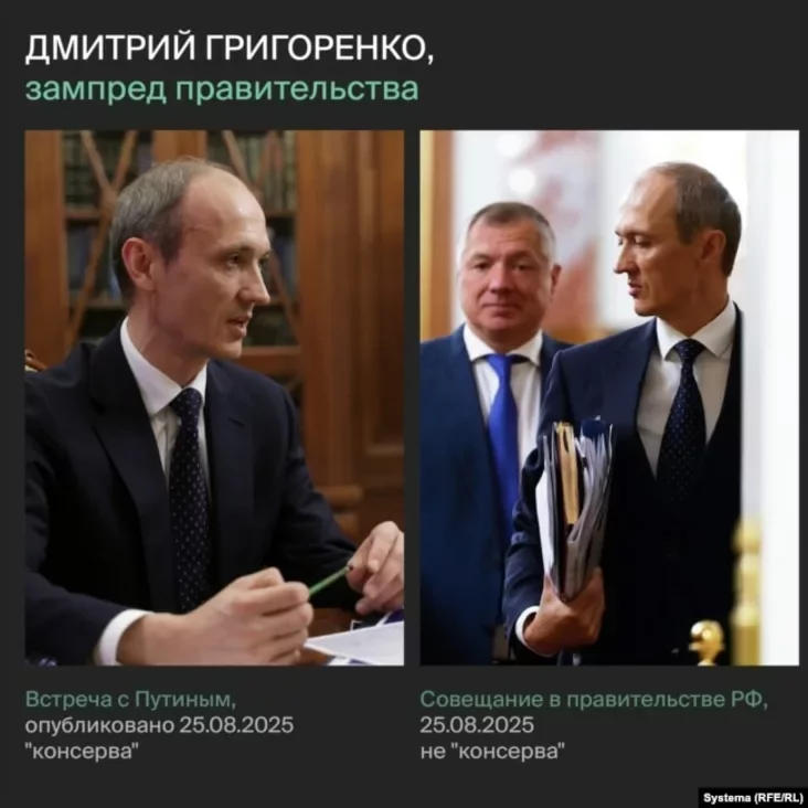 У 2025 годзе прэс-служба Крамля неаднаразова публікавала загадзя запісаныя сустрэчы Уладзіміра Пуціна з рознымі асобамі, прадстаўляючы іх як новыя. Такія відэа атрымалі назву «кансервы» — іх паказваюць у дні, калі расійскі кіраўнік фактычна не з’яўляецца на публіцы. Расследавальніцкі праект «Сістэма» паказаў на прыкладах, што ў такіх сюжэтах не так, піша «Настоящее время».