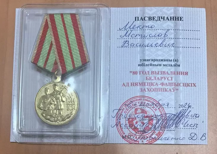 Паўлічэнка выпісаў выдатніку медаль «80 год вызвалення Беларусі ад нямецка-фашысцкіх захопнікаў».