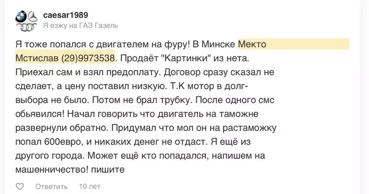 Але форумы аўтамабілістаў памятаюць Мекту як чалавека, які ў 2015‑м годзе «прадаваў» неіснуючыя рухавікі, беручы перадаплату наперад, а потым сцвярджаючы, што рухавік нібыта захрас на мытні. Грошы Мекта не вяртаў, праз форум шукалі іншых пацярпелых для напісання калектыўнай заявы аб махлярстве.