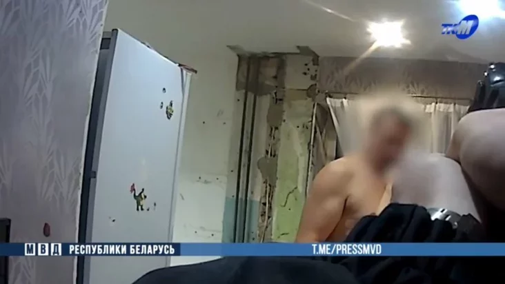 На міліцэйскім відэа затрымання хатняга тырана бачная абстаноўка ў кватэры: абшарпаныя сцены, неўпарадкаванасць.