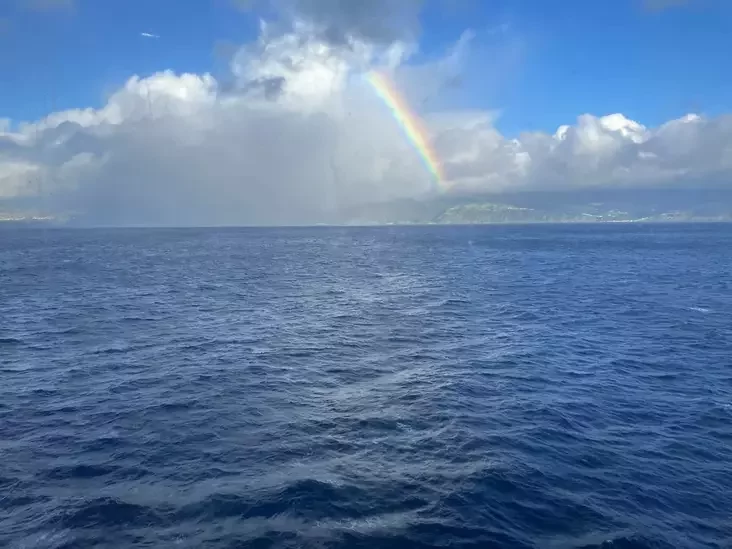 — Потым адплылі ў бок Азорскіх выспаў. На Азорах мы сустрэліся з Ігарам Карнеем і яго цудоўнай жонкай Інай і правялі яшчэ адзін выдатны дзень. Пасля гэтага быў шасцідзённы пераход праз Атлантычны акіян, на працягу якога гадзіннікі перавялі на пяць гадзін. Доўгі час не было бачна ні кавалачка зямлі. Гэта сапраўды ўражвае!