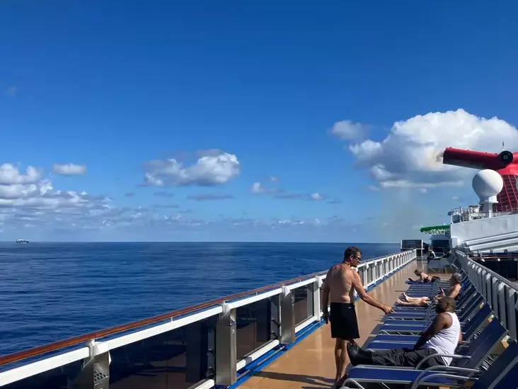 — Ужо пасля адплыцця з порту, пакуль карабель манеўраваў, я заўважыў, што з борта ў порце было бачна марское дно: прытым што асадка круізнага судна пры ўваходзе ў порт мінімум 8 метраў, а глыбіня порта — 10—12 метраў. Настолькі вось чыстая вада на Багамах.