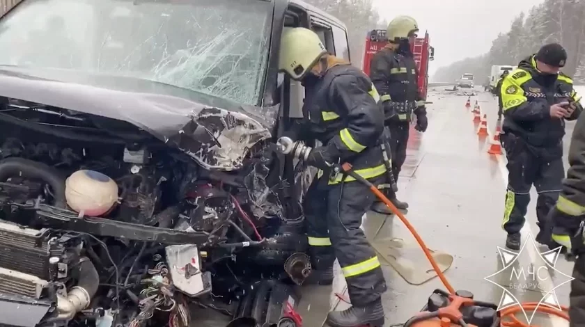 У выніку аварыі кіроўца мікрааўтобуса апынуўся заблакаваны ў машыне. Супрацоўнікі МНС дасталі яго з аўтамабіля, пасля чаго мужчыну адправілі ў бальніцу.