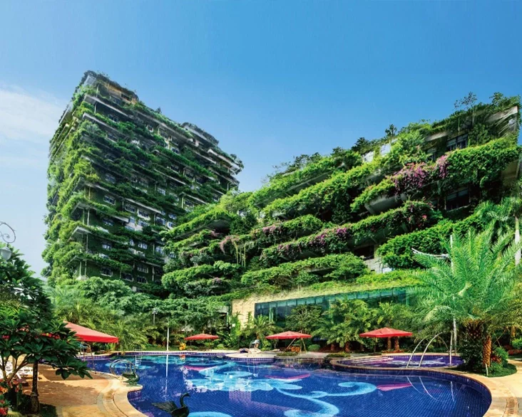 У рамках глабальнай ініцыятывы «Адзін пояс, адзін шлях» кампанія планавала стварыць ідэальнае асяроддзе для жыцця: горад без аўтамабіляў на паверхні, з вертыкальнымі садамі, разумнымі тэхналогіямі, уласнымі аквапаркамі, палямі для гольфа і міжнароднымі школамі.