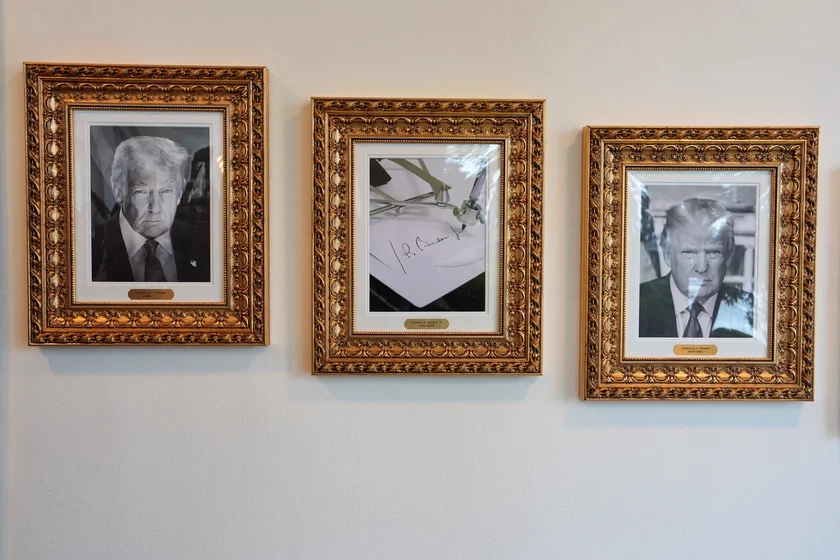 Па распараджэнні Трампа раней у Белым доме ў партрэтнай галерэі прэзідэнтаў ЗША замест партрэта Джо Байдэна павесілі партрэт з ягоным подпісам, зробленым аўтапэнам. Фота: P Photo/Jose Luis Magana