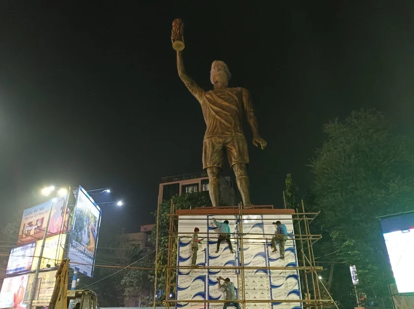 У кампаніі з аднаклубнікамі па «Інтэр Маямі» Луісам Суарэсам і Радрыга дэ Паўлем васьміразовы пераможца «Залатога мяча» прэзентуе статую сябе ў Калькуце ў суботу.