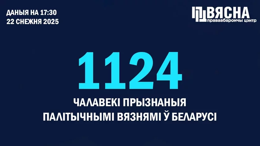 22 снежня праваабаронцы прызналі палітвязнямі яшчэ 23 чалавек. Агульная колькасць людзей, якія на сёння прызнаныя ў Беларусі палітвязнямі, складае 1124 чалавекі.