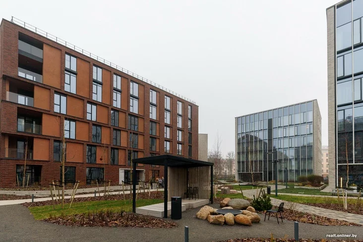Новыя шасціпавярховыя дамы — практычна блізняты: у іх па 30 кватэр, аднолькавае афармленне месцаў агульнага карыстання, свой падземны паркінг (месцы ў ім, дарэчы, даволі прасторныя — канфлікты на глебе таго, што хтосьці не можа адкрыць дзверы аўто з-за крыва пастаўленага суседа, выключаны). Таксама на мінусавым узроўні знаходзяцца кладоўкі.