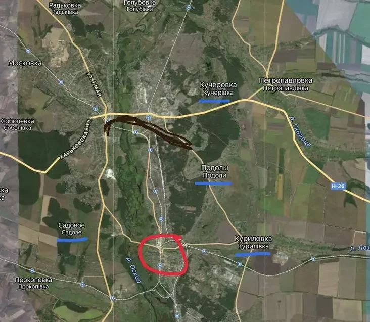 Прарасійскі тэлеграм-канал «Белорусский силовик» апублікаваў карту, на якой правёў чорным колерам мяжу тэрыторыі пад кантролем УСУ і падкрэсліў сінім населеныя пункты, якія «мякка кажучы, не зусім пад нашым кантролем». З карты вынікае, што расійскае войска не падышло да Купянск-Вузлавога.