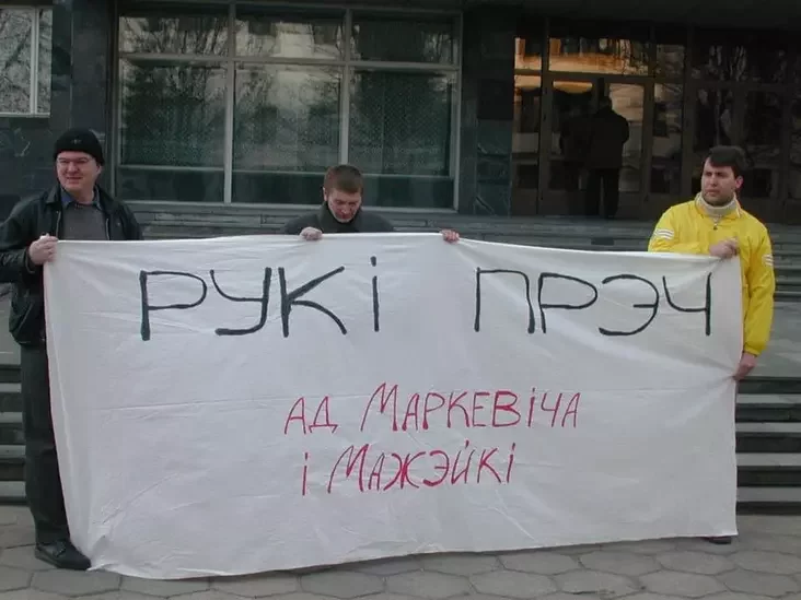 ЛР: З бацькамі я наведвала розныя мітынгі ў Гародні, Дні Волі тыя ж, у больш дарослым узросце насіла на руцэ бел-чырвона-белую стужку. Дарэчы, пра тое, што майго тату затрымлівалі пасля адной з акцый, я даведалася толькі ў дарослым узросце. Тады затрымалі Паўла Мажэйку, з якім яны разам працавалі ў «Пагоні», і тата з Анджэем Пачобутам, Андрэем Мялешкам (на фота ніжэй. — НН) і з іншымі калегамі выходзілі на некалькі пікетаў.