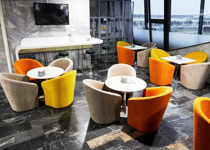 За 35 даляраў пасажыры атрымліваюць доступ у зону чакання з мяккімі крэсламі і шведскім сталом, у які ўключаныя стравы, напоі і шэраг дадатковых сэрвісаў.