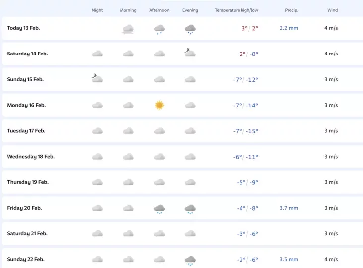 Надвор'е ў Мінску на наступныя дні паводле yr.no