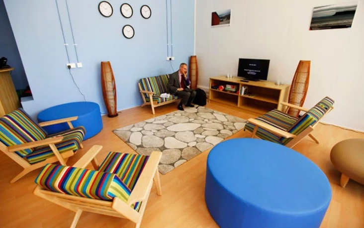 Тут на пярэднім плане медыяцэнтр, асноўная пляцоўка для працы журналістаў